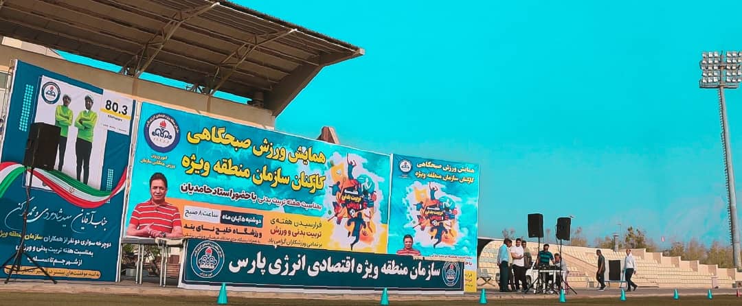 ۵ آبان ماه به مناسبت هفته تربیت بدنی همایش ورزش صبحگاهی کارکنان منطقه ویژه در ورزشگاه خلیج نای بند برگزار شد.
