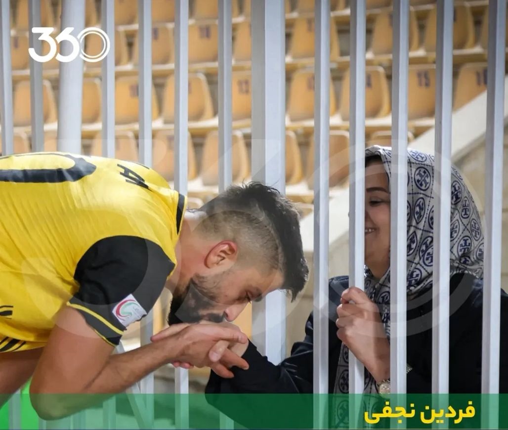 فردین نجفی بازیکن موثر پارس جنوبی جم در رقابتهای فصل اخیر لیگ دسته اول در پایان بازی مقابل هوادار اینگونه بر دستان مادرش بوسه زد .